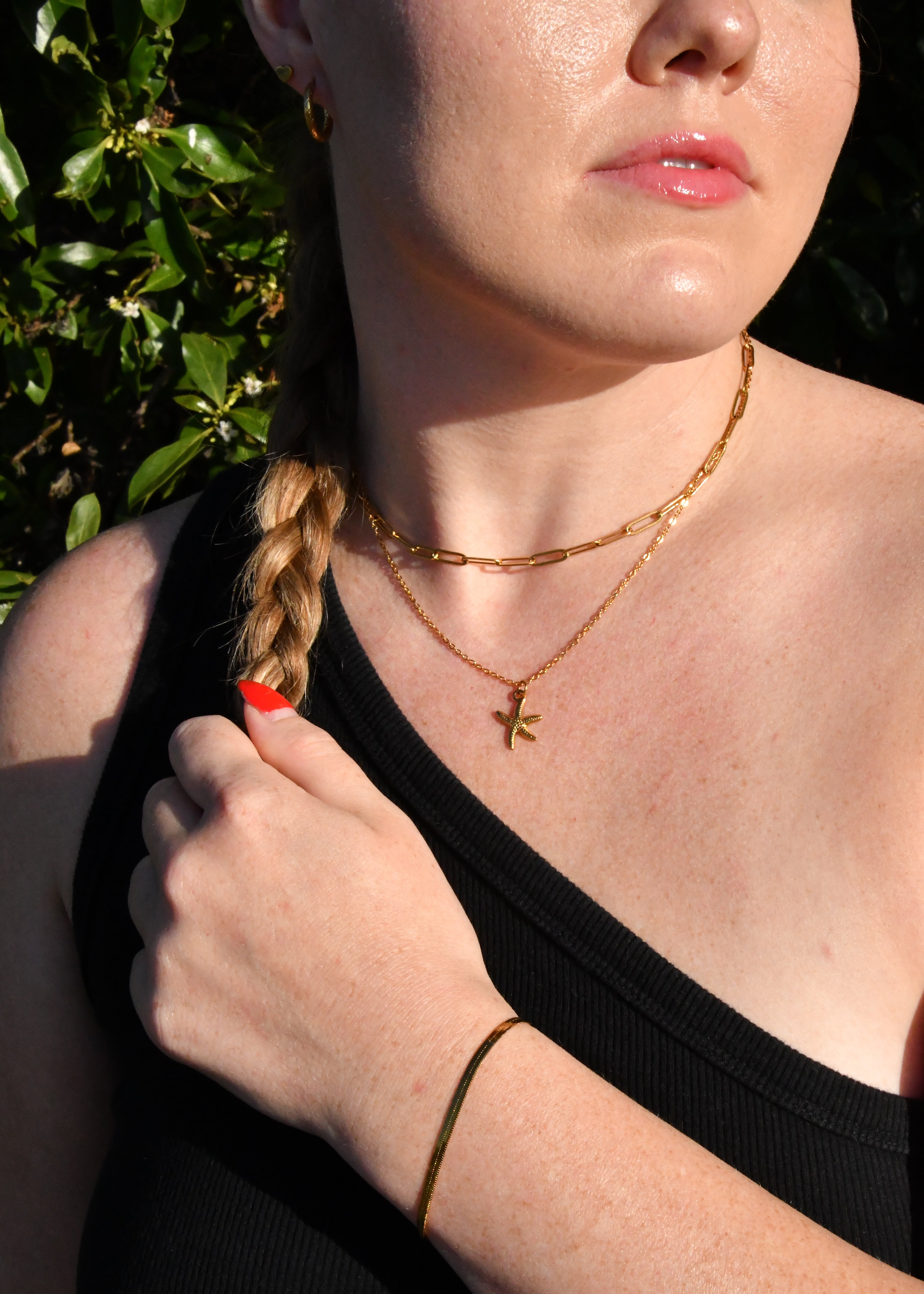 18K gold finishes every piece, supported by a PVD-coated, surgical-grade stainless steel core — built for beauty that lasts.