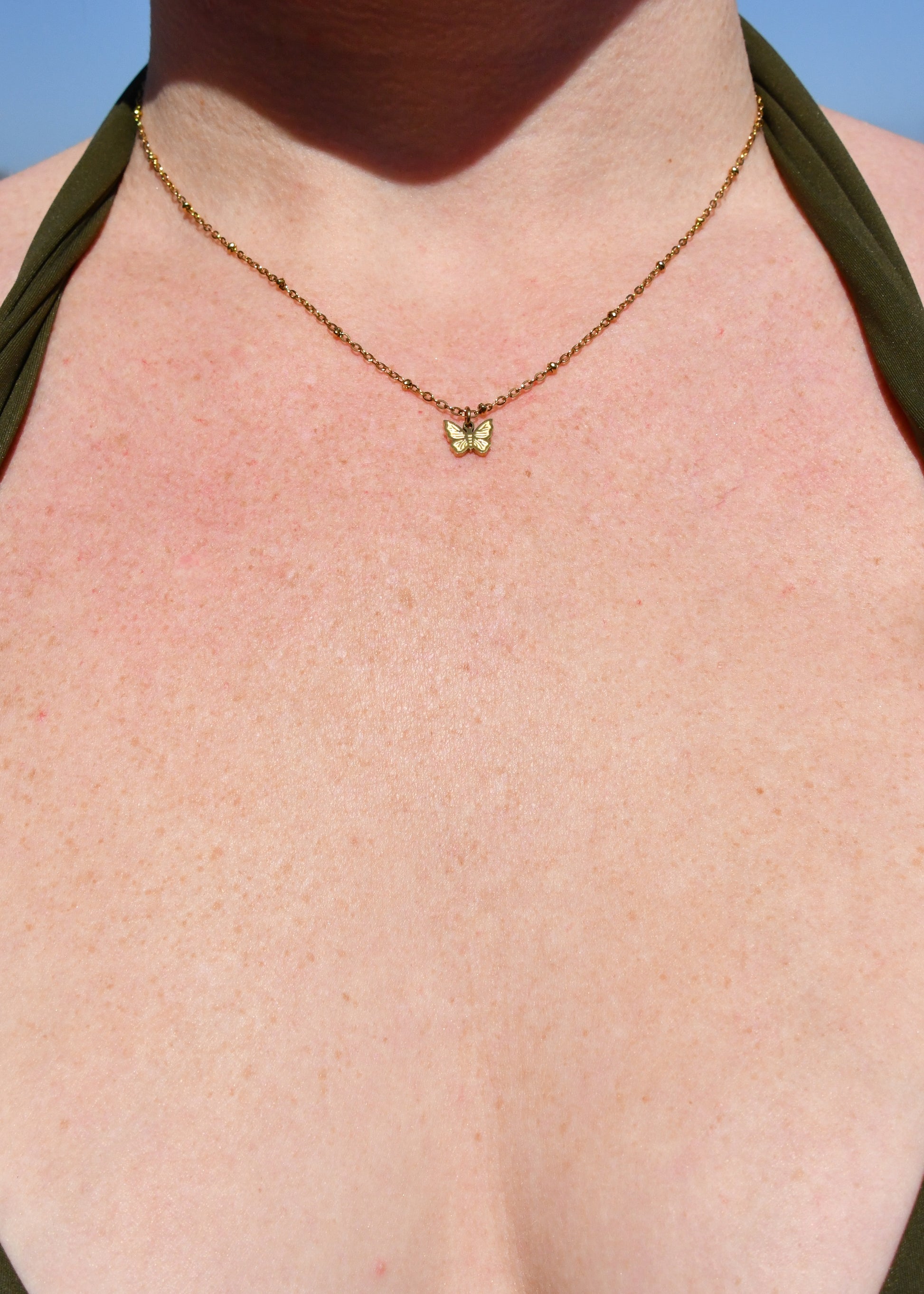 A radiant gold butterfly charm that catches the light with every movement. Sophisticated and sleek, it’s a stunning addition to your jewelry collection.