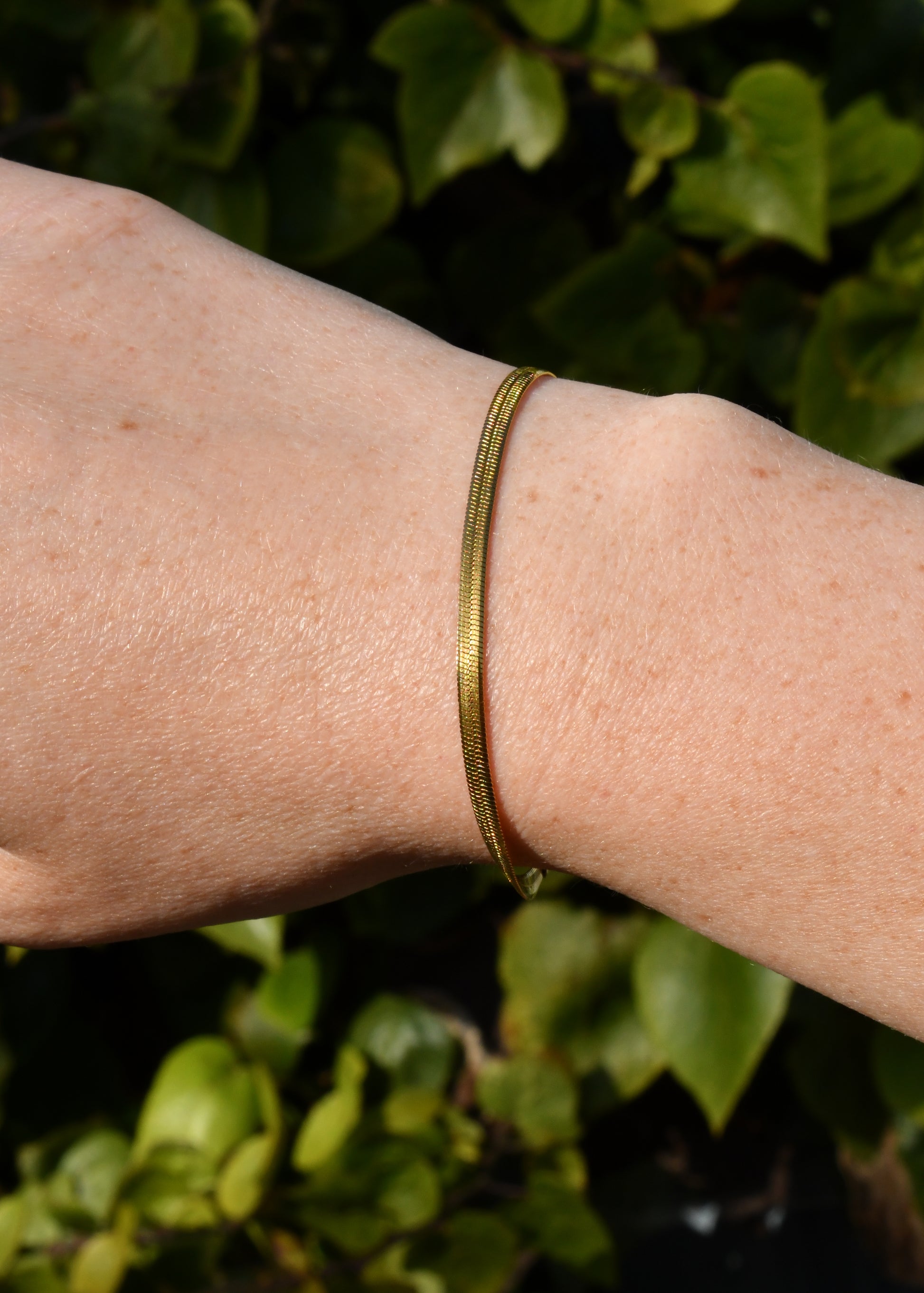 Timeless and minimal, this herringbone chain wraps the wrist with a soft glow. A must-have for stacking or wearing solo with ease.