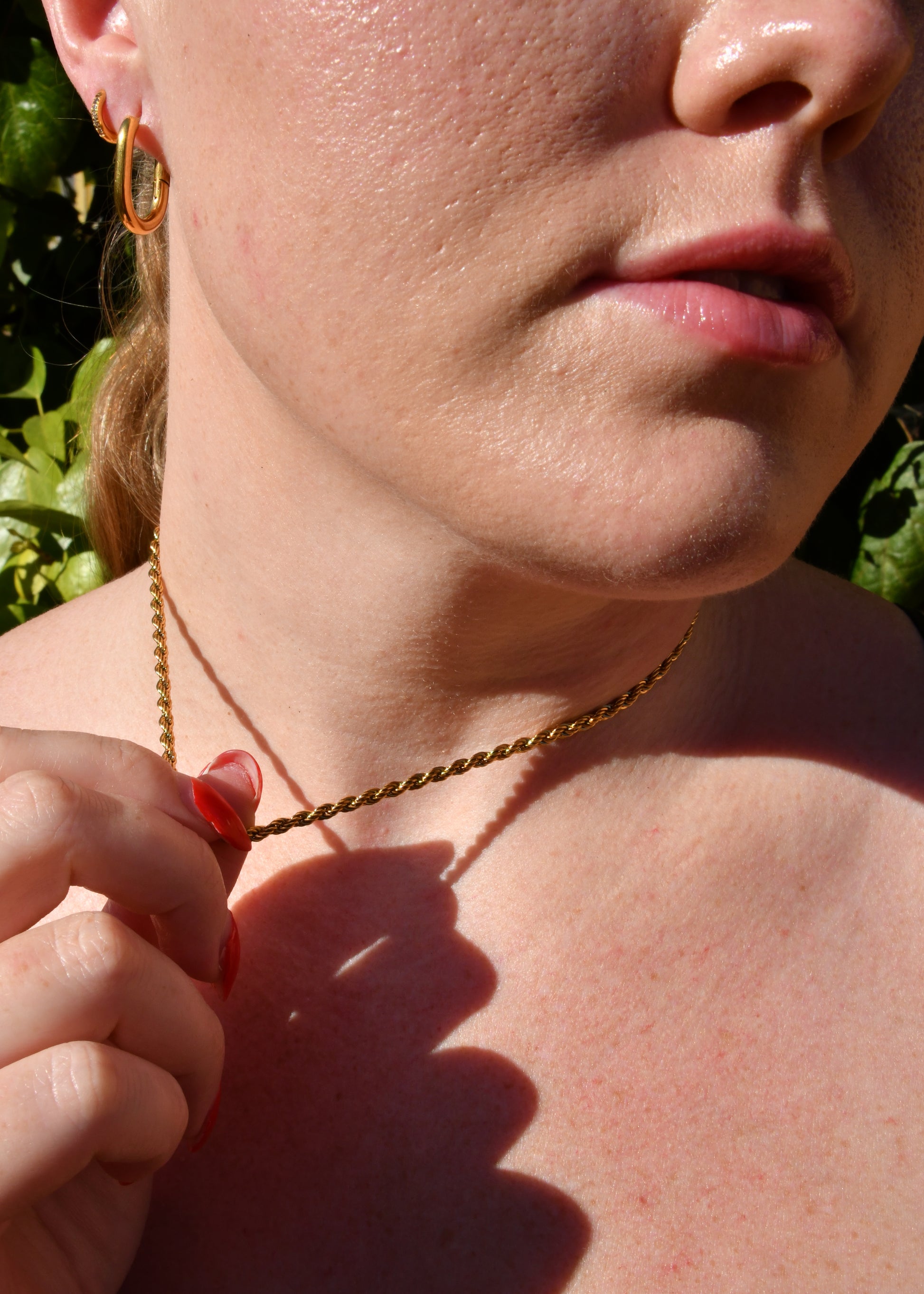 Twisted to perfection, this rope chain offers shimmer and structure in one. A go-to piece whether you're keeping it simple or stacking it up.